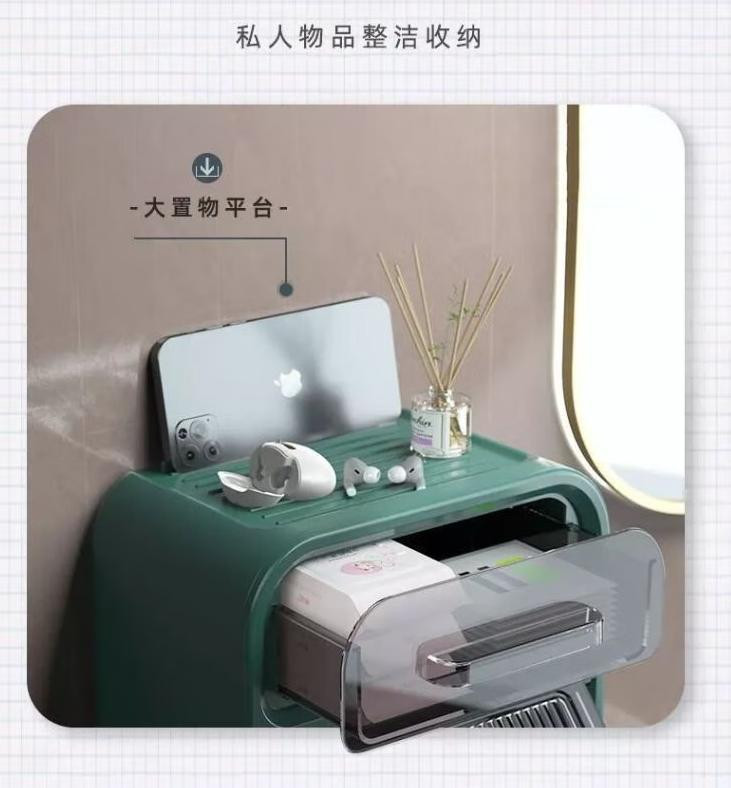柯丽影卫生间纸巾盒厕所纸巾盒置物架免打孔厕纸盒壁挂卷纸抽纸盒绿色的描述