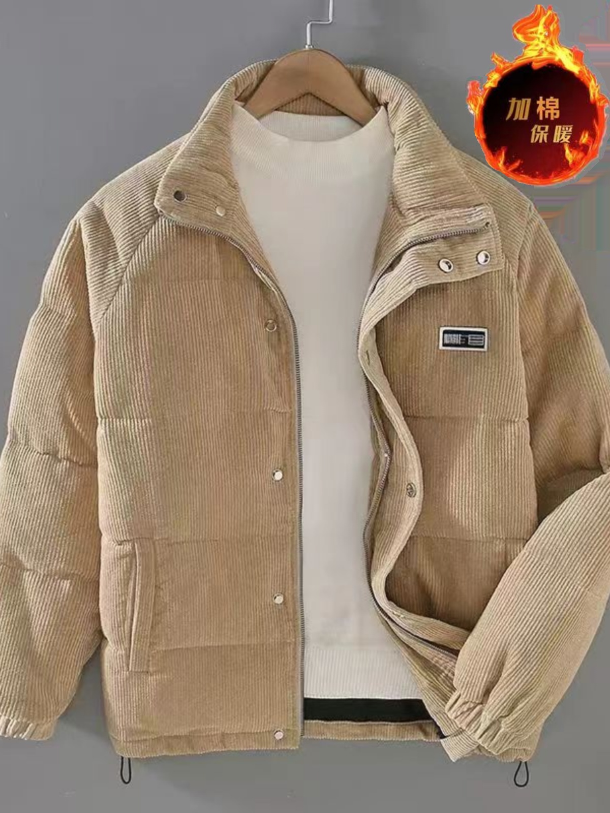 冬季男士棉衣加厚保暖灯芯绒棉服外套日系宽松潮流纯色秋冬装棉袄的描述