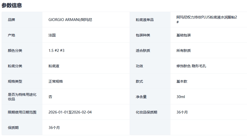 阿玛尼权力持妆PLUS粉底液权利持久的描述
