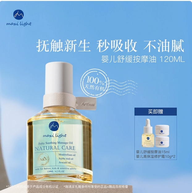 英国Maxilight奇麦思新生婴幼儿抚触油舒缓按摩宝宝身体护肤