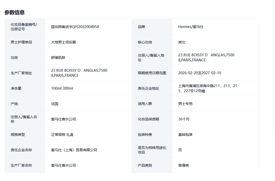 Hermes爱马仕大地男士须后霜面霜保湿润肤木质调的描述