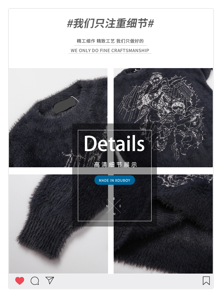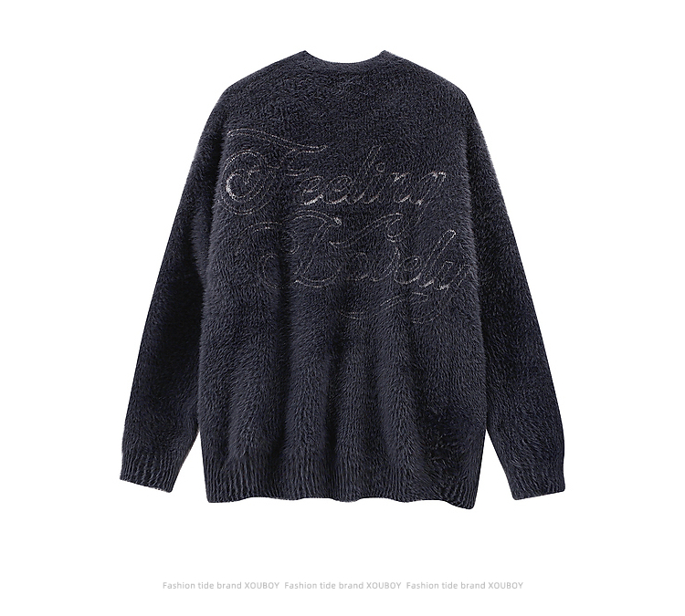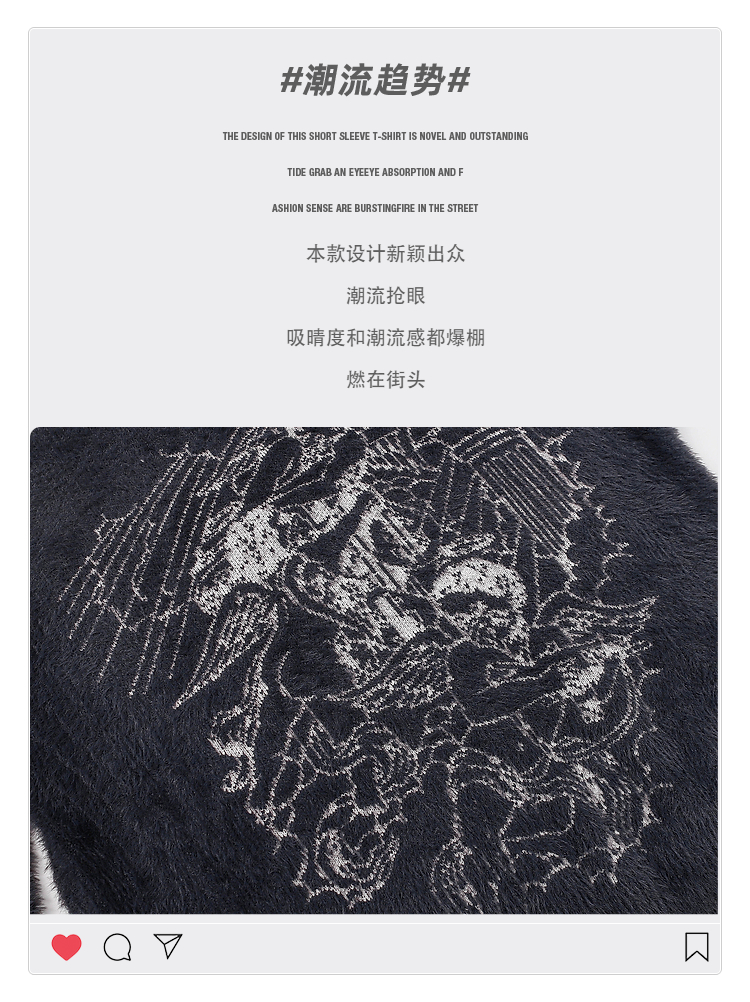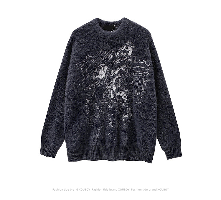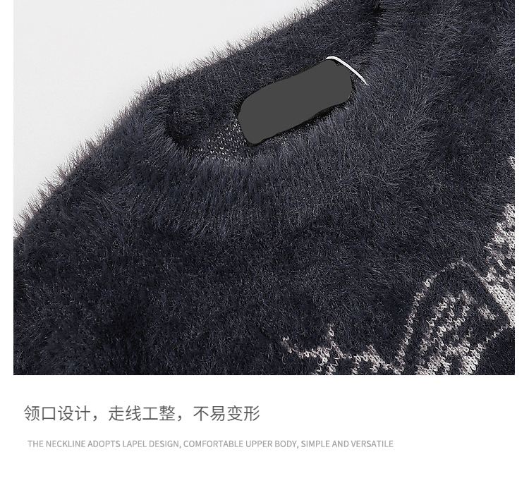 vintage美式复古创意提花圆领毛衣男女秋冬hiphop情侣长袖针织衫的描述