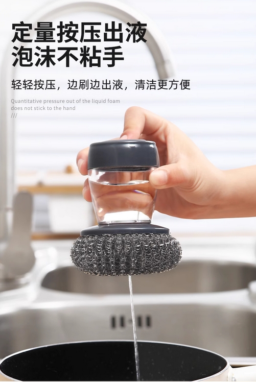 厨房自动加液洗碗刷家用洗锅刷海绵刷钢丝球长柄清洁刷子刷锅神器