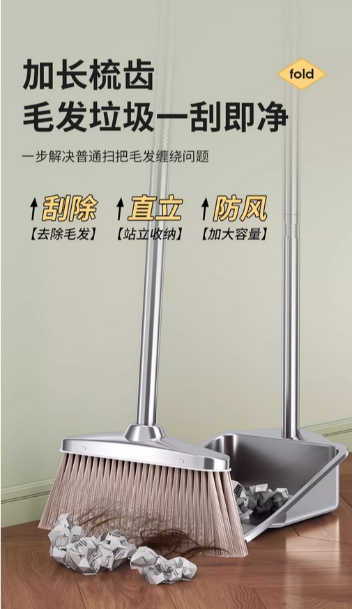 扫把2023新款家用簸箕套装组合扫帚头发扫地神器不锈钢垃圾铲笤帚