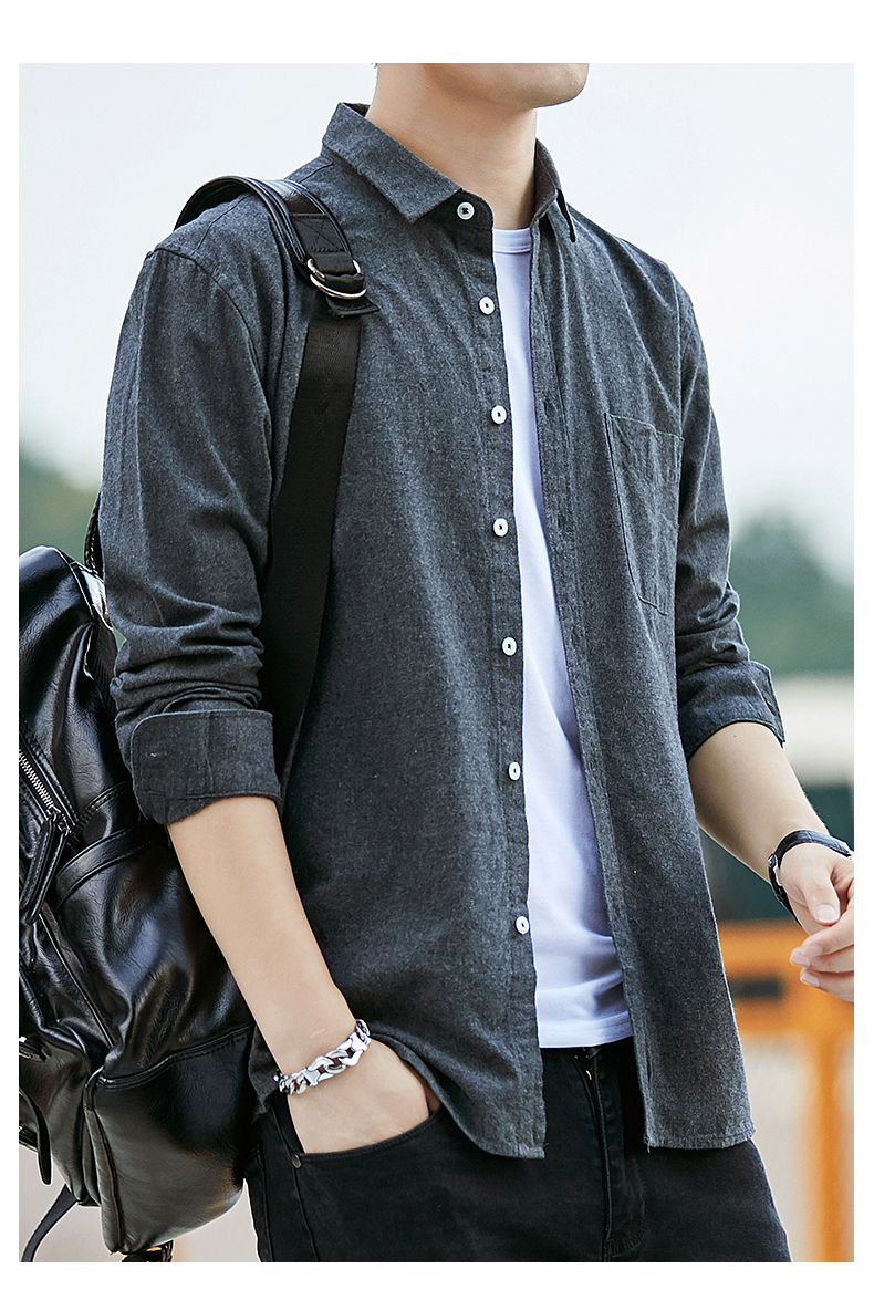 秋季男士磨毛衬衣宽松休闲上衣男款纯棉衬衫长袖痞帅男装潮流外套的描述